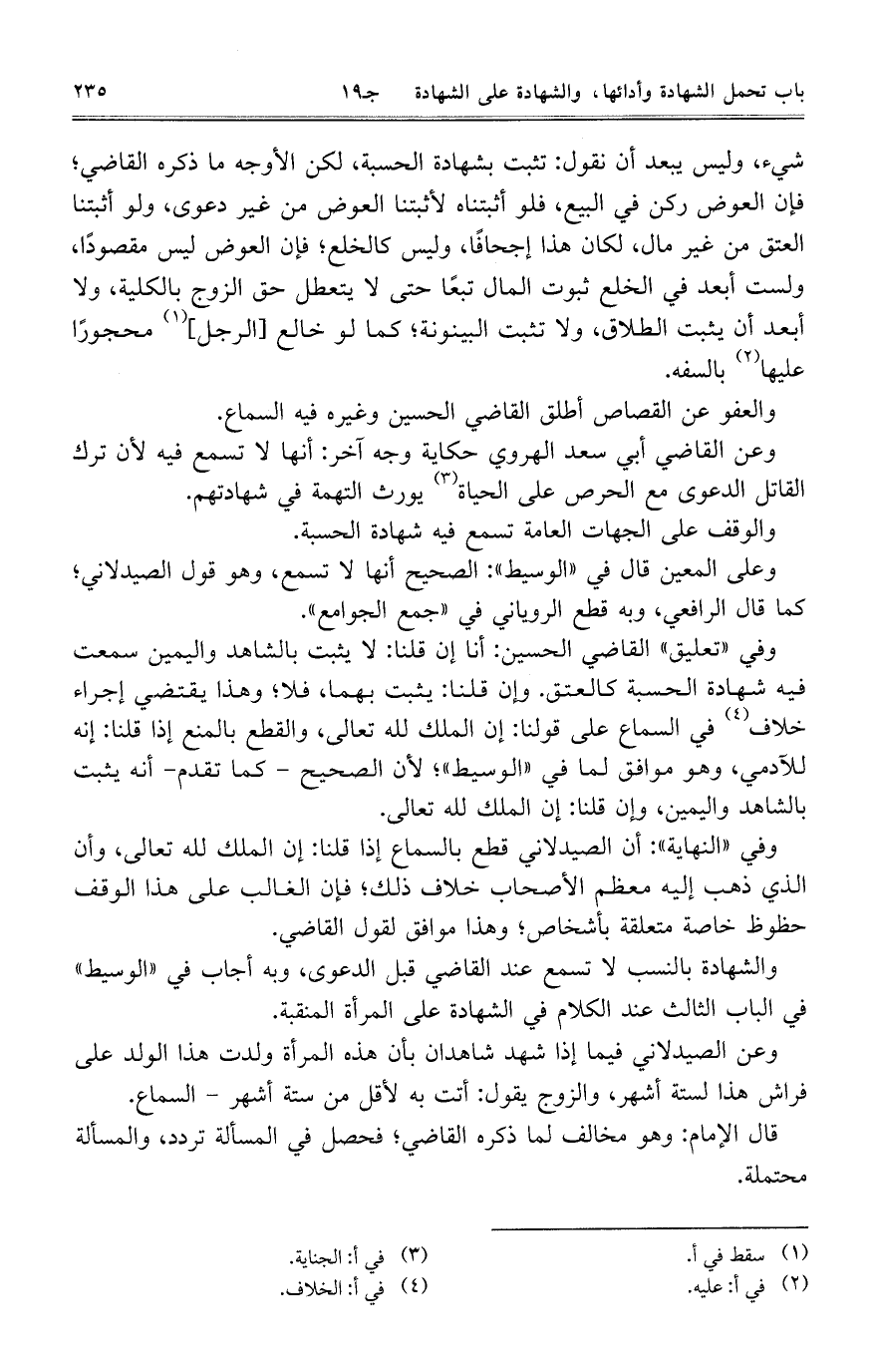 وفي ((تعليق)) القاضي الحسين: أنا إن قلنا: لا يثبت بالشاهد واليمين سمعت فيه شهادة الحسبة كالعتق. وإن قلنا: لا يثبت بالشاهد واليمين سمعت فيه شهادة الحسبة كالعتق. وإن قلنا: يثبت بهما، فلا، وهذا يقتضي إجراء خلاف في السماع على قولنا: إن الملك لله تعالى، والقطع بالمنع إذا قلنا: إنه للآدمي، وهو موافق لما في ((الوسيط))، لأن الصحيح- كما تقدم- أنه يثبت بالشاهد واليمين، وإن قلنا: إن الملك لله تعالى.