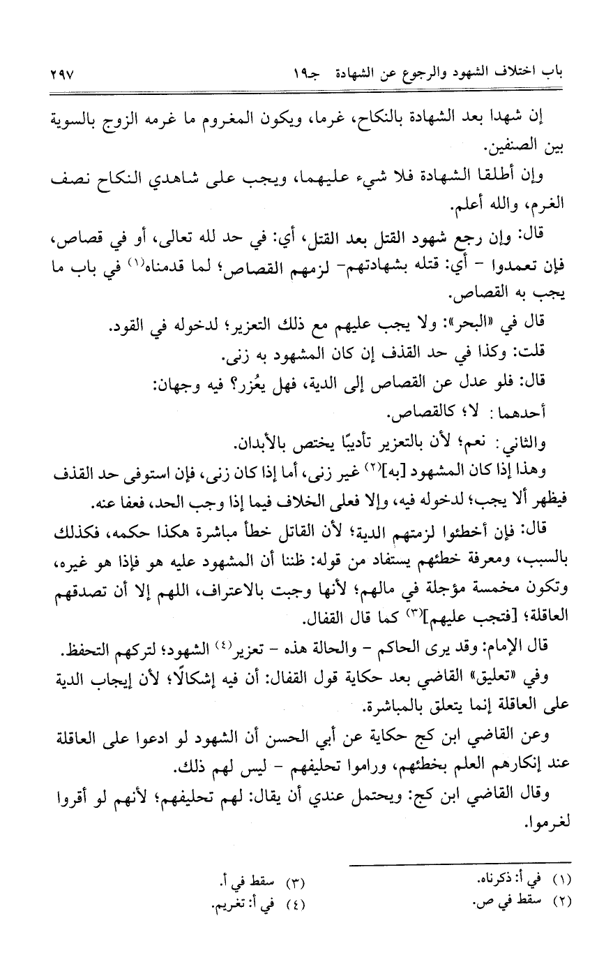 قال الإمام: وقد يرى الحاكم- والحالة هذه- تعزير الشهود، لتركهم التحفظ.