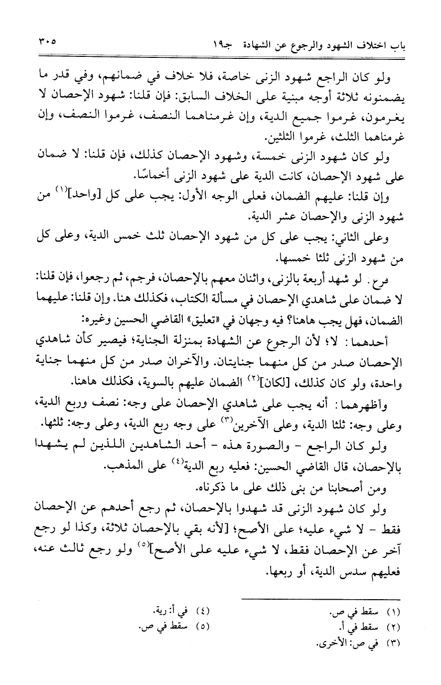 ولو كان شهود الزنى قد شهدوا بالإحصان، ثم رجع أحدهم عن الإحصان فقط- لا شيء عليه، على الأصح، [لأنه بقي بالإحصان ثلاثة، وكذا لو رجع آخر عن الإحصان فقط، لا شيء عليه على الأصح] ولو رجع ثالث عنه، فعليهم سدس الدية، أو ربعها.