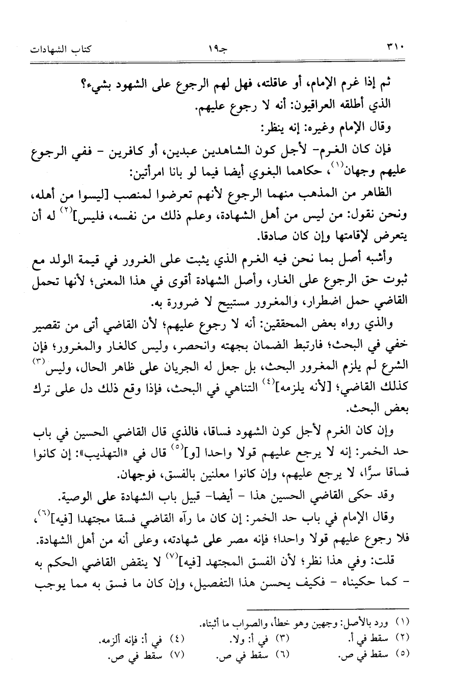 وقال الإمام في باب حد الخمر: إن كان ما رآه القاضي فسقا مجتهدًا [فيه]، فلا رجوع عليهم قولًا واحدًا، فإنه مصر على شهادته، وعلى أنه من أهل الشهادة.