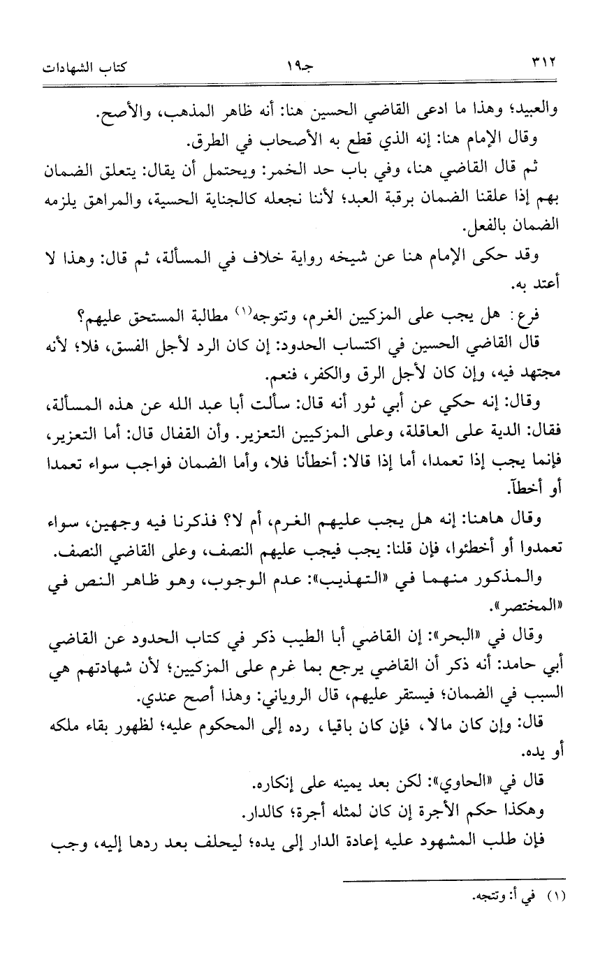 وقال: إنه حكي عن أبي ثور أنه قال: سألت أبا عبد الله عن هذه المسألة، فقال: الدية على العاقلة، وعلى المزكيين التعزير. وأن القفال قال: أما التعزير، فإنما يجب إذا تعمدا، أما إذا قالا: أخطأنا فلا، وأما الضمان فواجب سواء تعمدا أو أخطأ.
