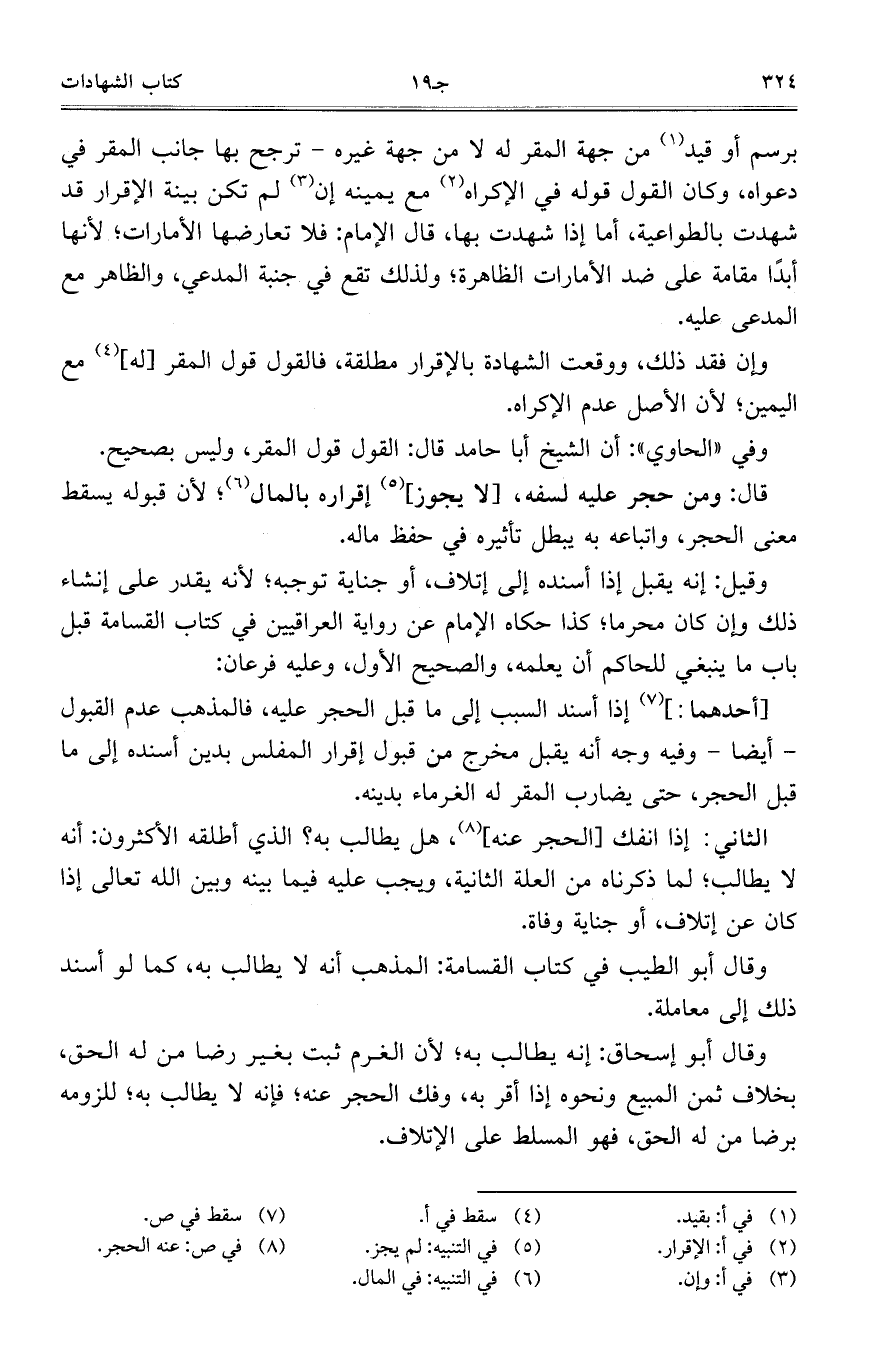 برسم أو قيد من جهة المقر له لا من جهة غره- ترجح بها جانب المقر في دعواه، وكان القول قوله في الإكراه مع يمينه إن لم تكن بينة الإقرار قد شهدت بالطواعية، أما إذا شهدت بها، قال الإمام: فلا تعارضها الأمارات، لأنها أبدًا مقامة على ضد الأمارات الظاهرة، ولذلك تقع في جنبة المدعي، والظاهر مع المدعى عليه.
