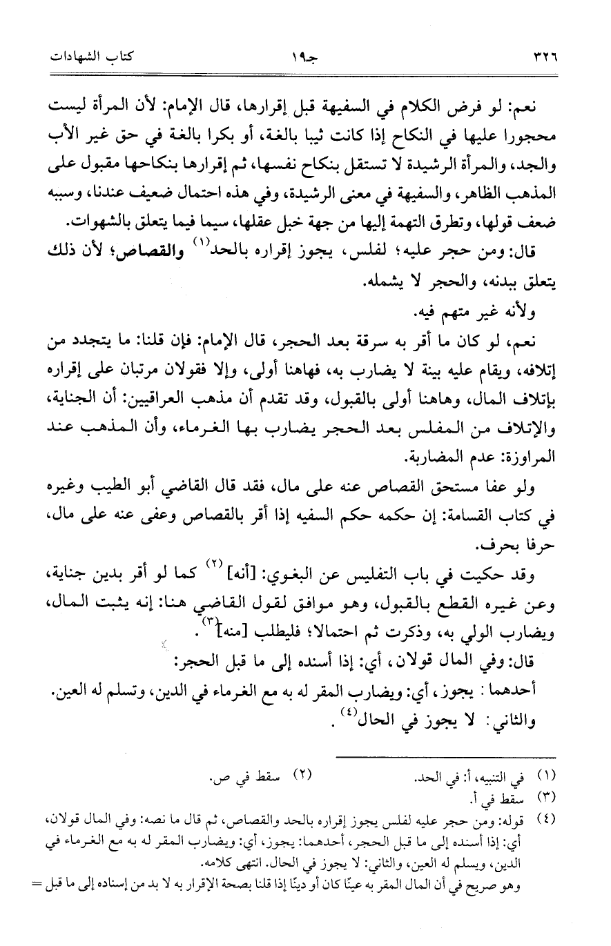 قال: ومن حجر عليه، لفلس، يجوز إقراره بالحد والقصاص، لأن ذلك يتعلق ببدنه، والحجر لا يشمله.