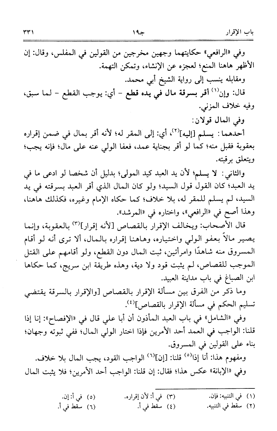 قال الأصحاب: ويخالف الإقرار بالقصاص [لأنه إقرار] بالعقوبة، وإنما يصير مالًا بعفو الولي واختياره، وهاهنا إقراره بالمال، ألا ترى أنه لو أقام المسروق منه شاهدًأ وامرأتين، ثبت المال دون القطع، ولو أقامهم على القتل الموجب للقصاص، لم يثبت قود ولا دية، وهذه طريقة ابن سريج، كما حكاها ابن الصباغ في باب مداينة العبيد.