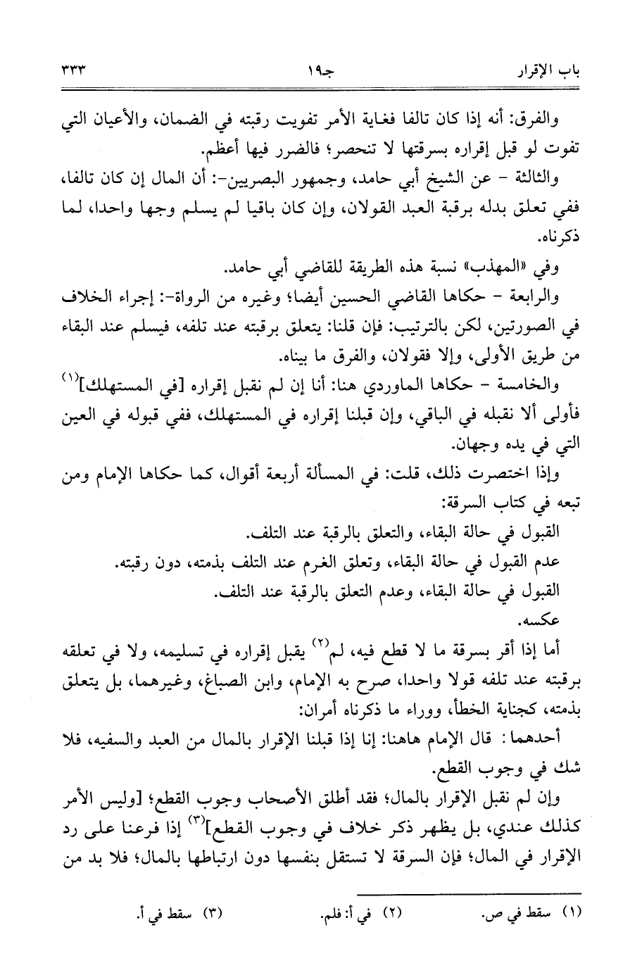 أحدهما: قال الإمام هاهنا: إنا إذا قبلنا الإقرار بالمال من العبد والسفيه، فلا شك في وجوب القطع.