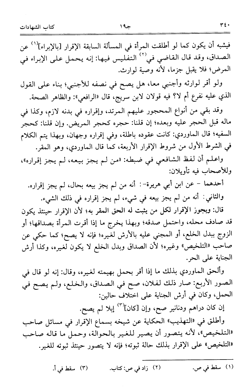 وأطلق في ((التهذيب)) الحكاية عن شيخه بسماع الإقرار في مسائل صاحب ((التلخيص))، لأنه يتصور أن يصير للغير بالحوالة، وحمل ما قاله صاحب ((التخليص)) على الإقرار بذلك حالة ثبوته، فإنه لا يتصور حينئذ ثبوته للغير.