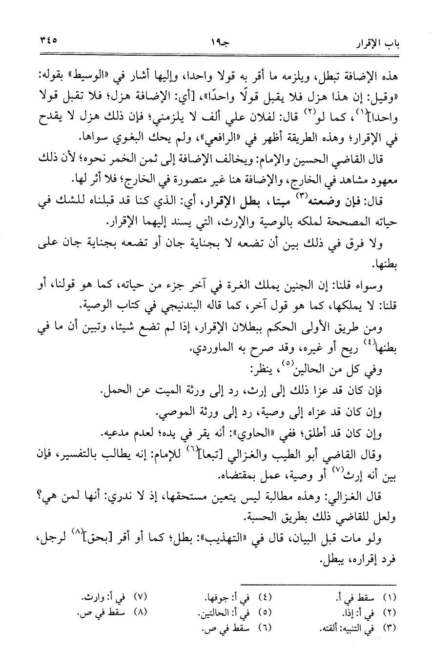 وقال القاضي أبو الطيب والغزالي [تبعًا] للإمام: إنه يطالب بالتفسير، فإن بين أنه إرث أو وصية، عمل بمقتضاه.