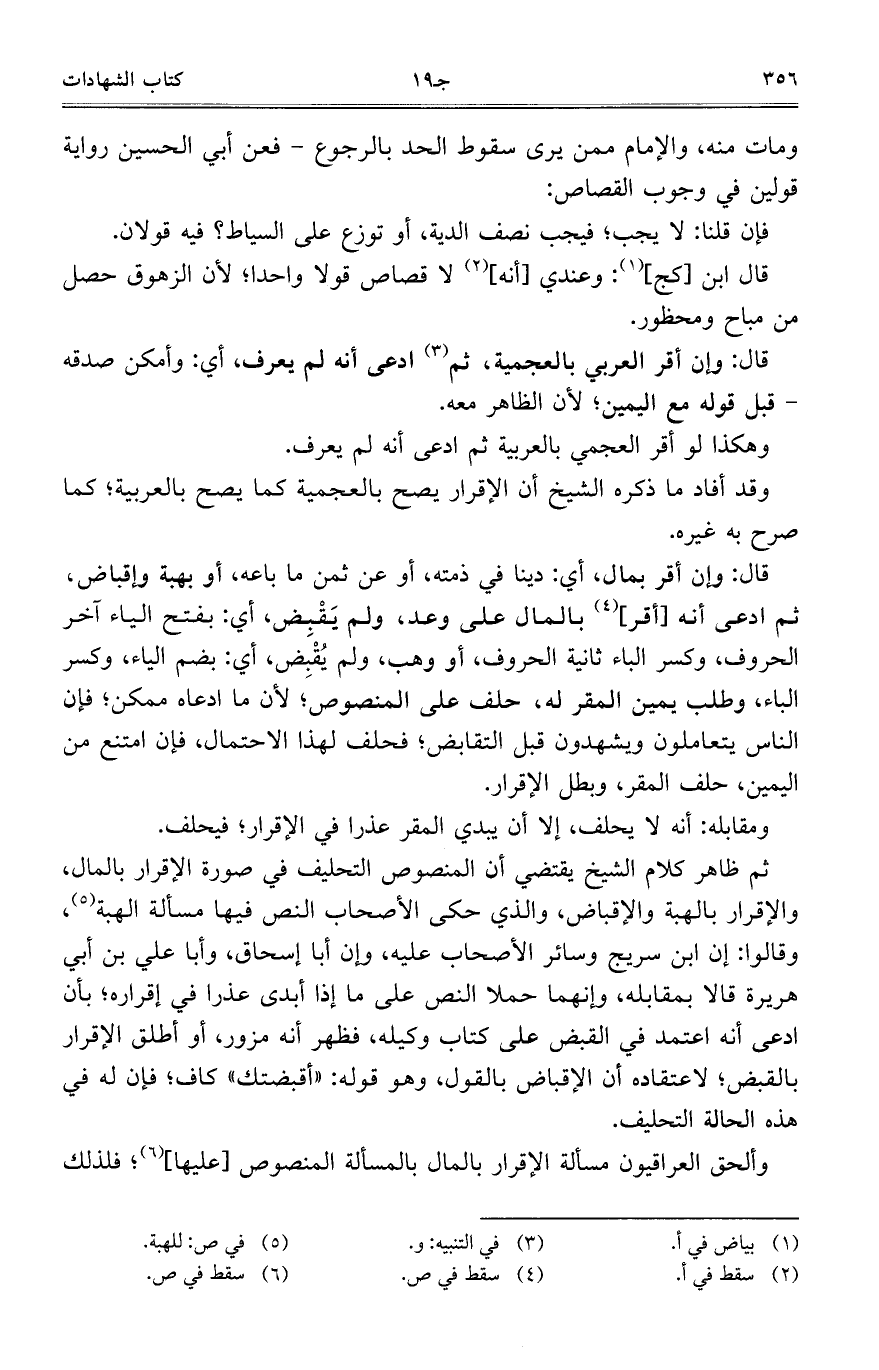 وألحق العراقيون مسألة الإقرار بالمال بالمسألة المنصوص [عليها]، فلذلك