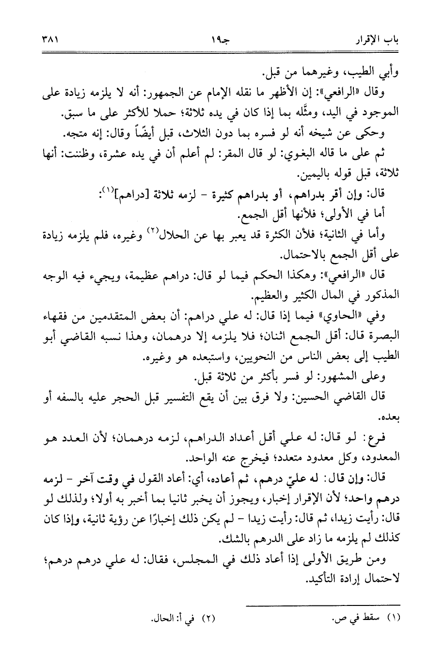 قال: وإن أقر بدراهم، أو بدراهم كثيرة- لزمه ثلاثة [دراهم]: