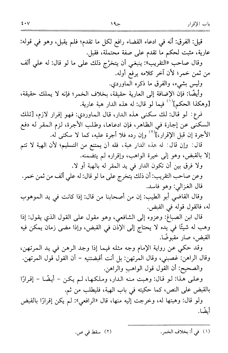 وقال صاحب ((التقريب)): ينبغي أن يتخرج ذلك على ما لو قال: له علي ألف من ثمن خمر، لأن آخر كلامه يرفع أوله.