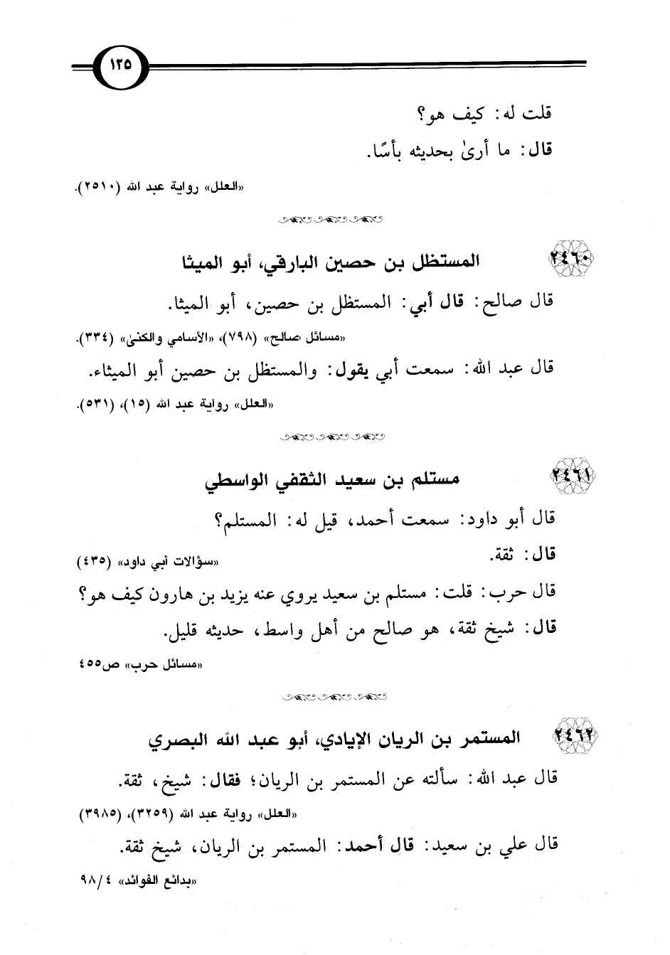 "مسائل صالح" (798)، "الأسامي والكنى" (334).