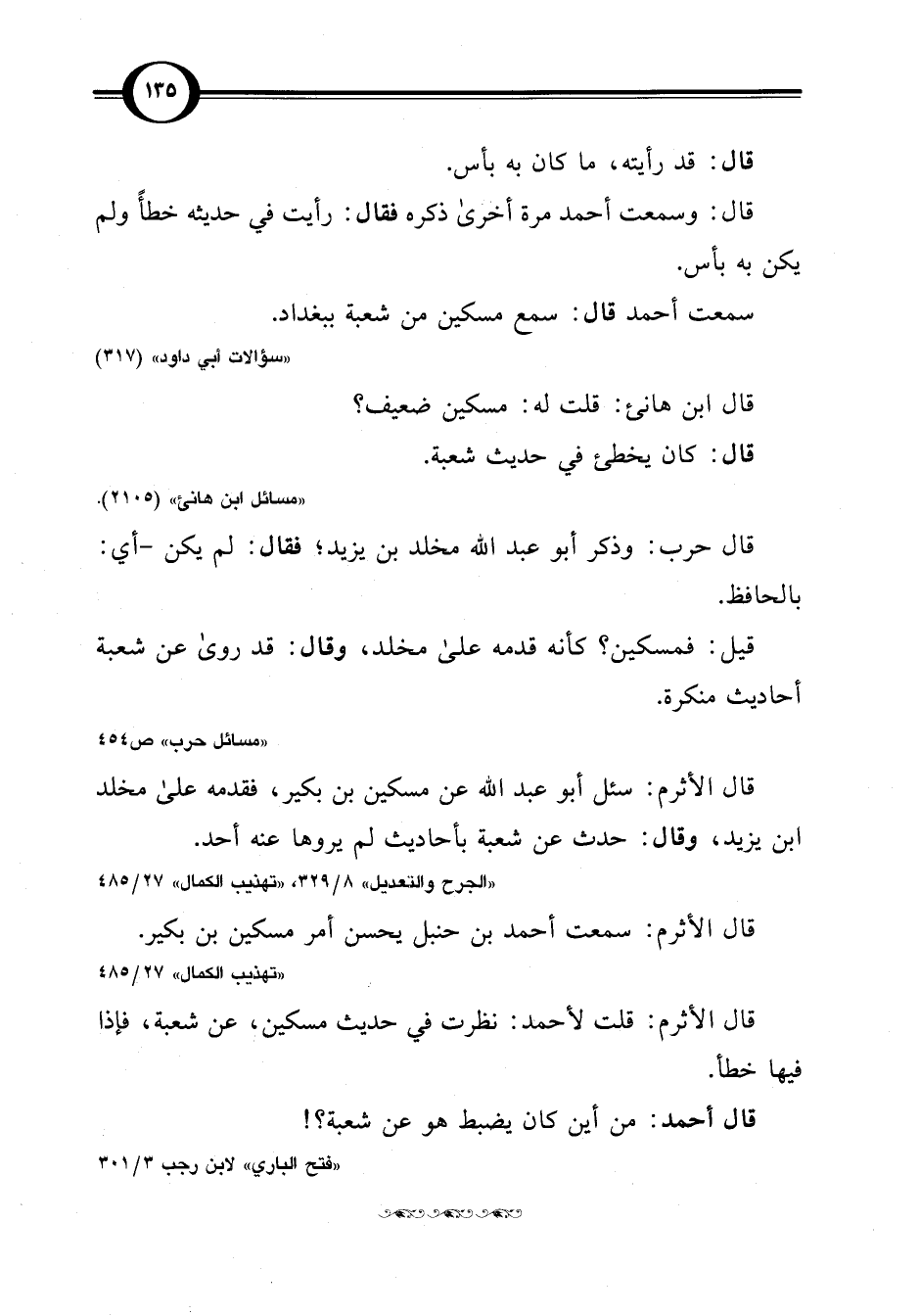 قال الأثرم: قلت لأحمد: نظرت في حديث مسكين، عن شعبة، فإذا فيها خطأ.