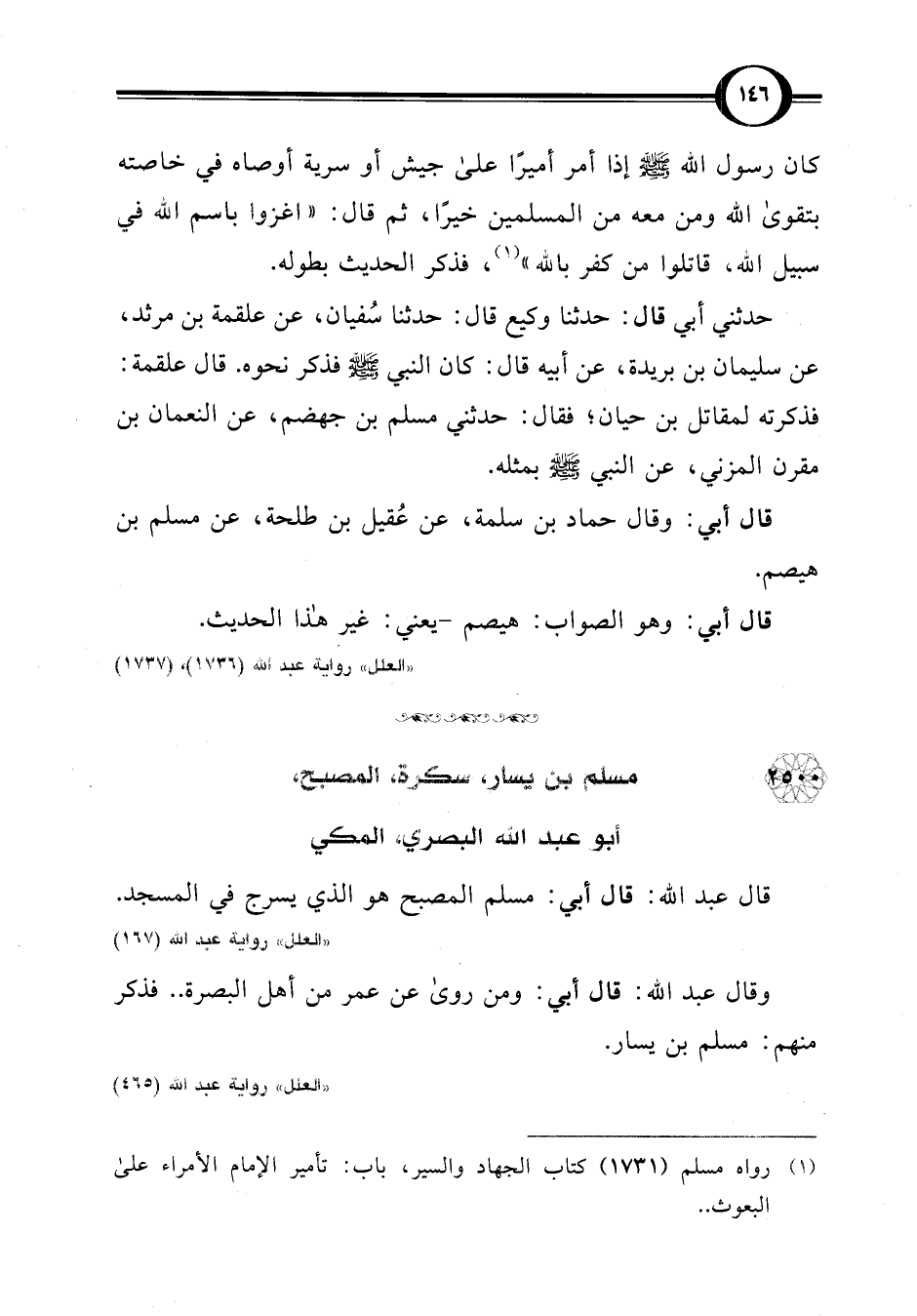 "العلل" رواية عبد اللَّه (1736)، (1737)