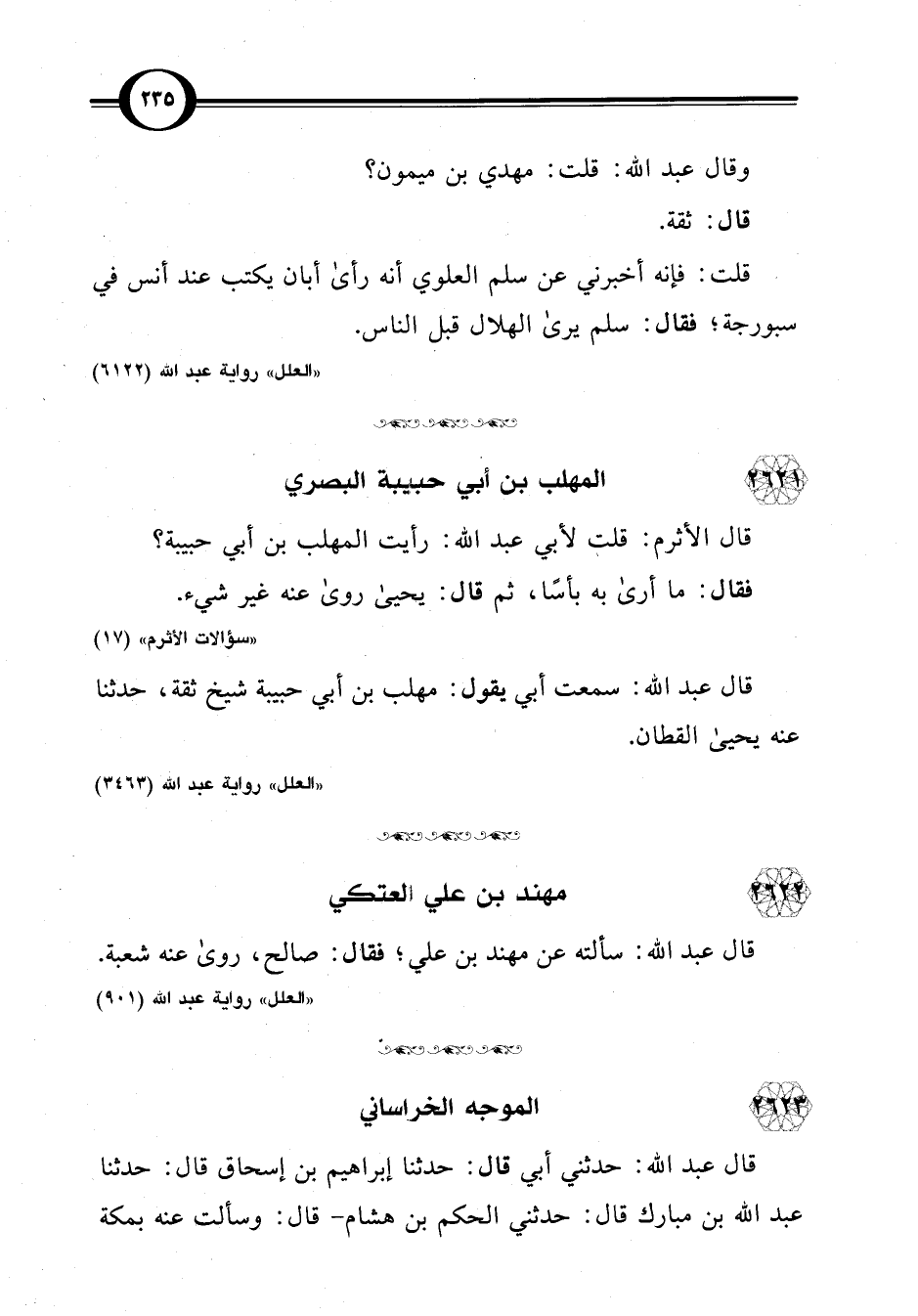 قال عبد اللَّه: حدثني أبي قال: حدثنا إبراهيم بن إسحاق قال: حدثنا عبد اللَّه بن مبارك قال: حدثني الحكم بن هشام -قال: وسألت عنه بمكة