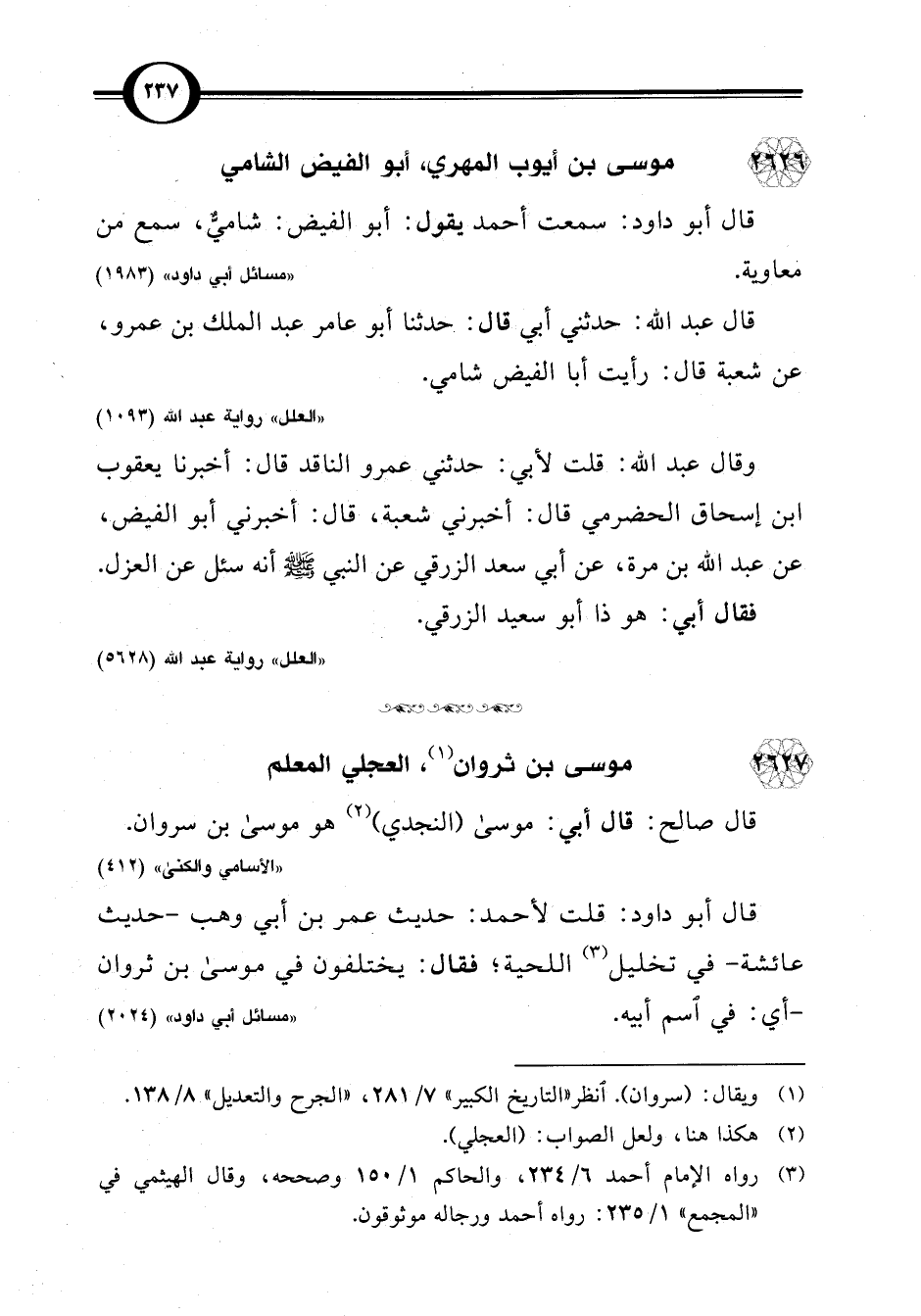 قال صالح: قال أبي: موسى (النجدي) (¬2) هو موسى بن سروان.