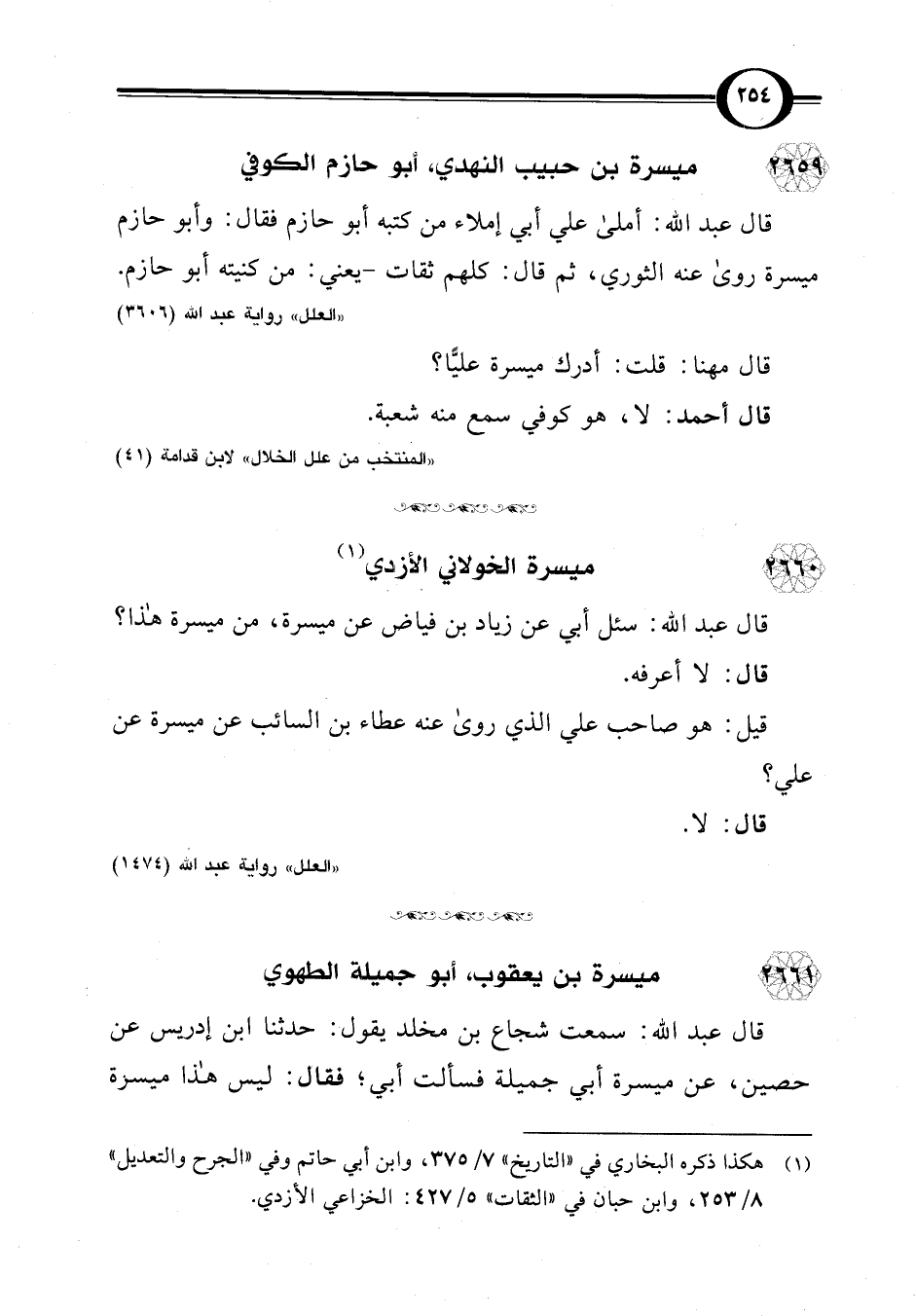 قال عبد اللَّه: سمعت شجاع بن مخلد يقول: حدثنا ابن إدريس عن حصين، عن ميسرة أبي جميلة فسألت أبي؛ فقال: ليس هذا ميسرة