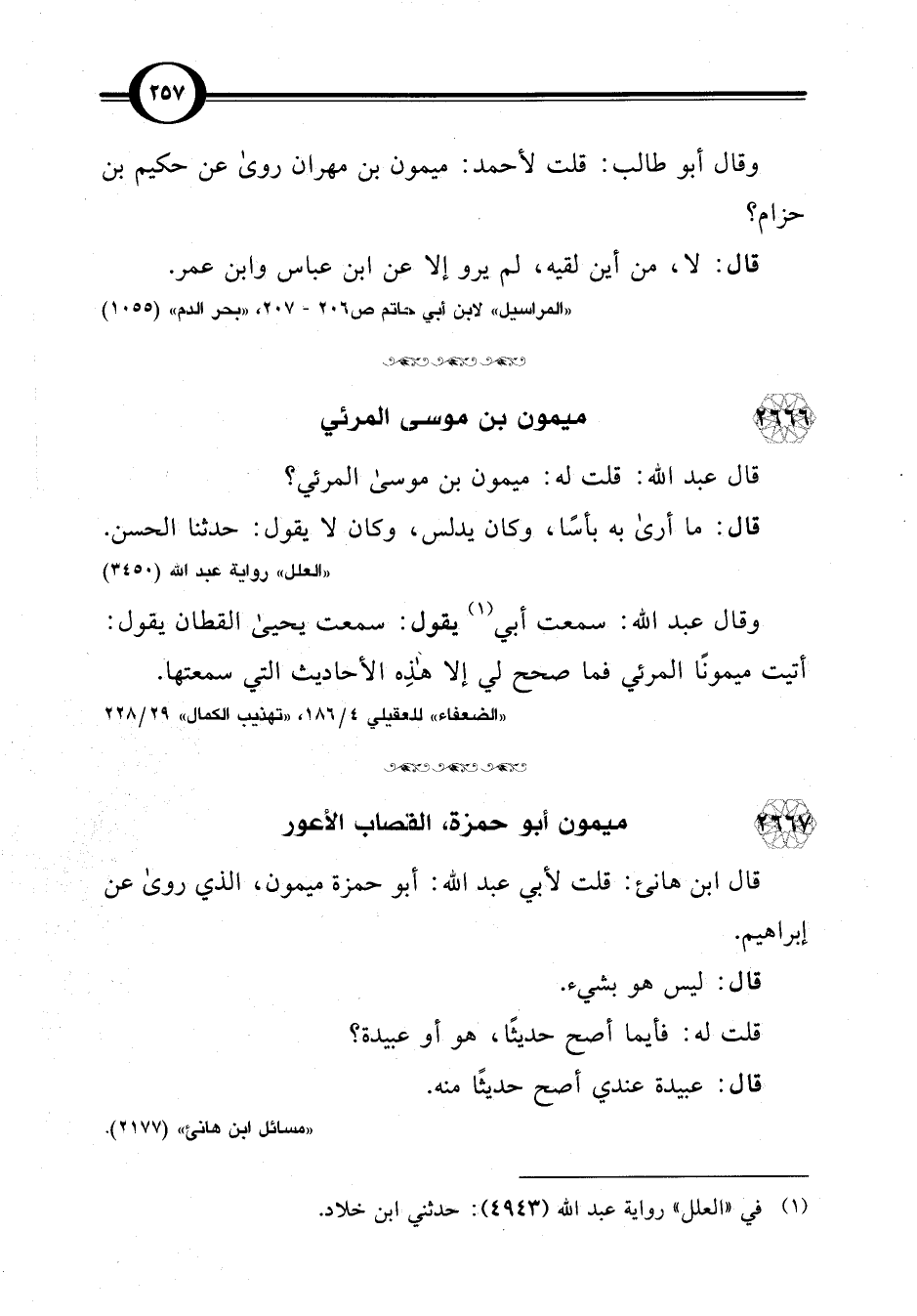 "المراسيل" لابن أبي حاتم ص 206 - 207، "بحر الدم" (1055)