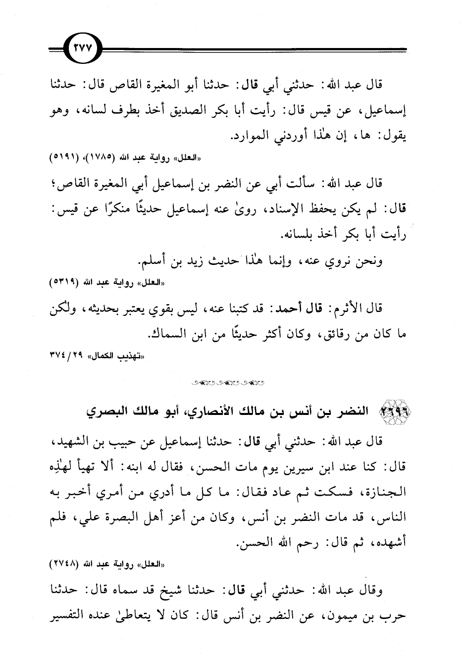 "العلل" رواية عبد اللَّه (1785)، (5191)