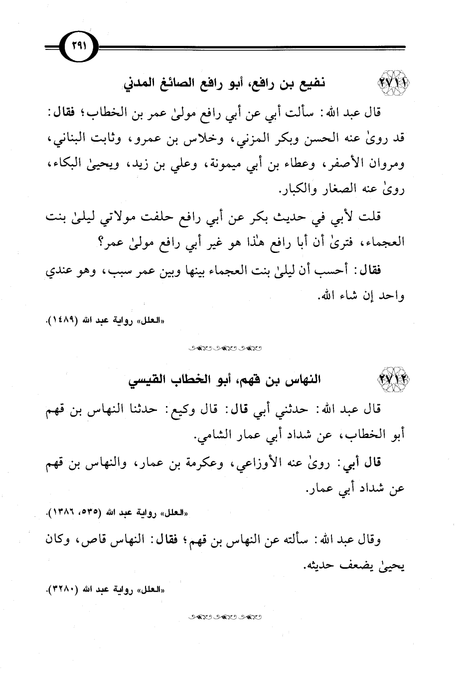 قال عبد اللَّه: حدثني أبي قال: قال وكيع: حدثنا النهاس بن قهم أبو الخطاب، عن شداد أبي عمار الشامي.