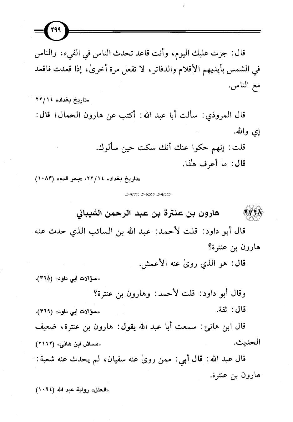 "تاريخ بغداد" 14/ 22، "بحر الدم" (1083)