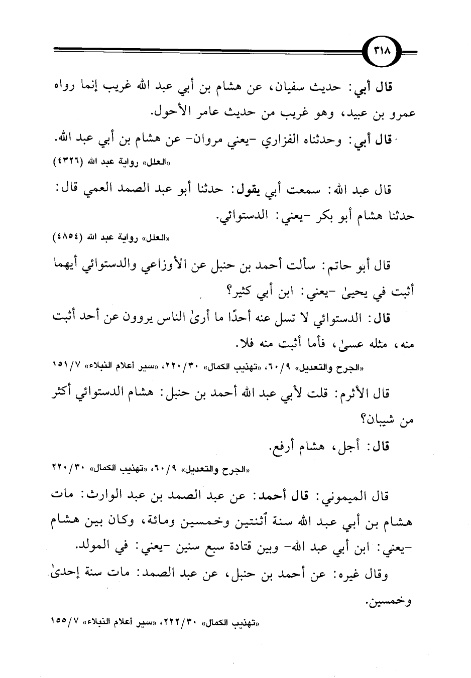 قال عبد اللَّه: سمعت أبي يقول: حدثنا أبو عبد الصمد العمي قال: حدثنا هشام أبو بكر -يعني: الدستوائي.