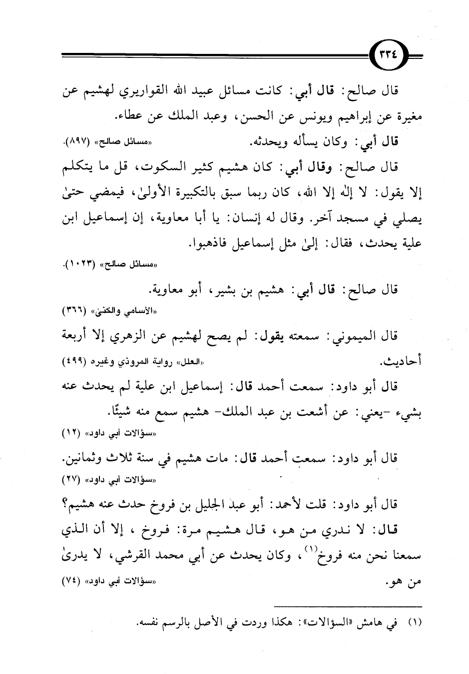 قال صالح: قال أبي: هشيم بن بشير، أبو معاوية.