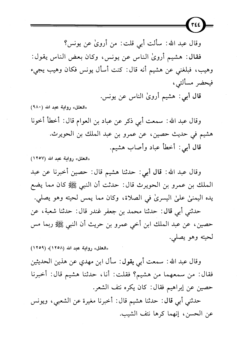 "العلل" رواية عبد اللَّه (1258)، (1259)