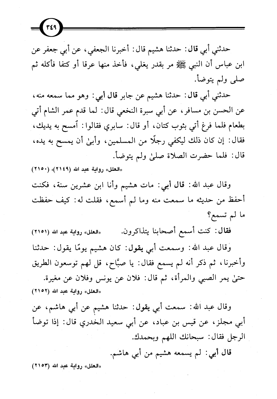 "العلل" رواية عبد اللَّه (2149)، (2150)