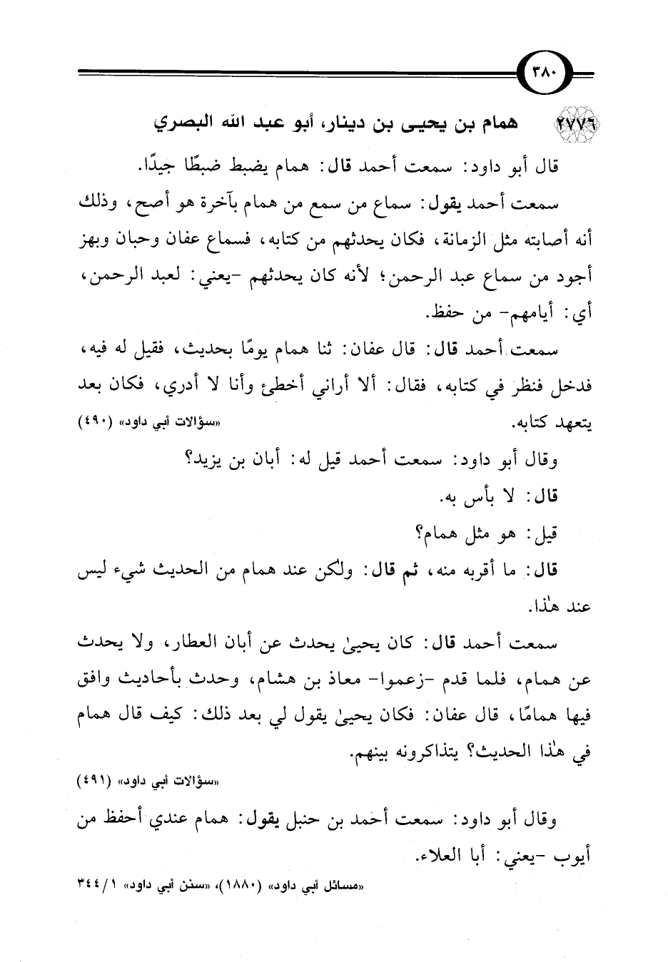 قال أبو داود: سمعت أحمد قال: همام يضبط ضبطًا جيدًا.