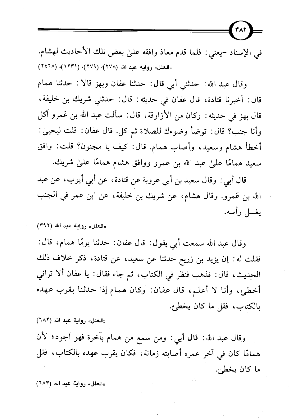 "العلل" رواية عبد اللَّه (278)، (279)، (1231)، (2468)