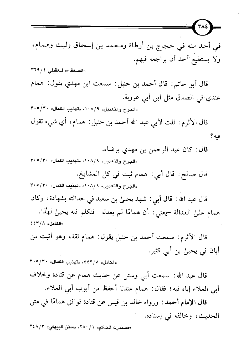 قال الأثرم: قلت لأبي عبد اللَّه أحمد بن حنبل: همام، أي شيء تقول فيه؟