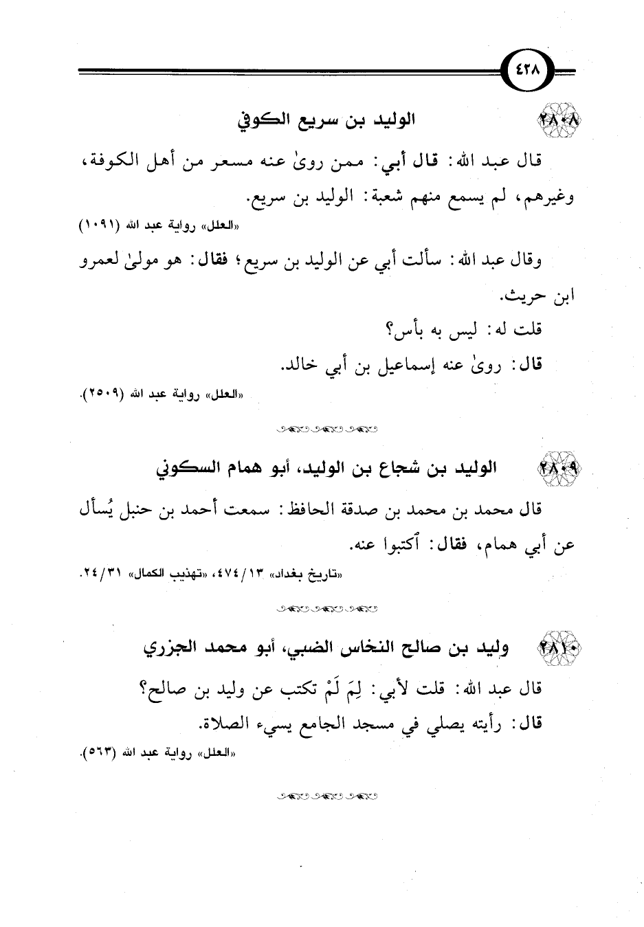 قال عبد اللَّه: قلت لأبي: لِمَ لَمْ تكتب عن وليد بن صالح؟