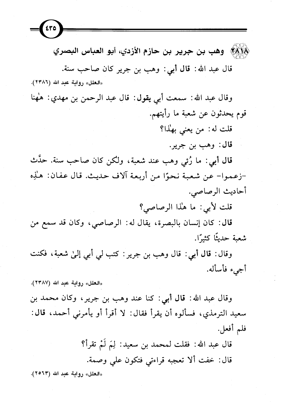 قال عبد اللَّه: قال أبي: وهب بن جرير كان صاحب سنة.