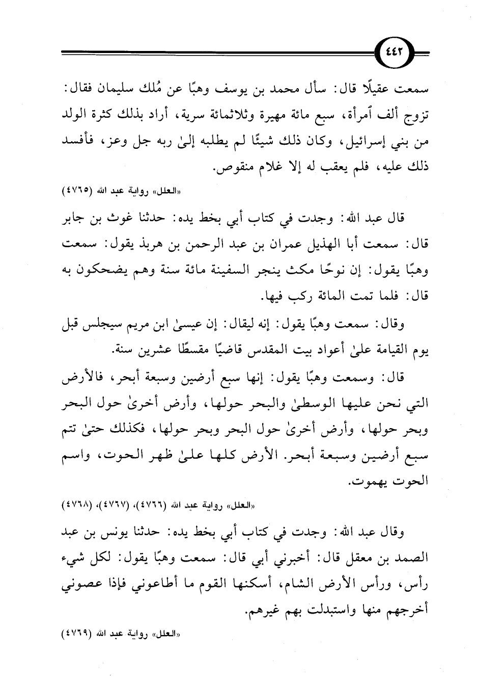 "العلل" رواية عبد اللَّه (4766)، (4767)، (4768)