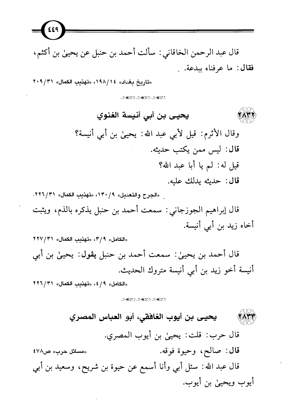 "تاريخ بغداد" 14/ 198، "تهذيب الكمال" 31/ 209