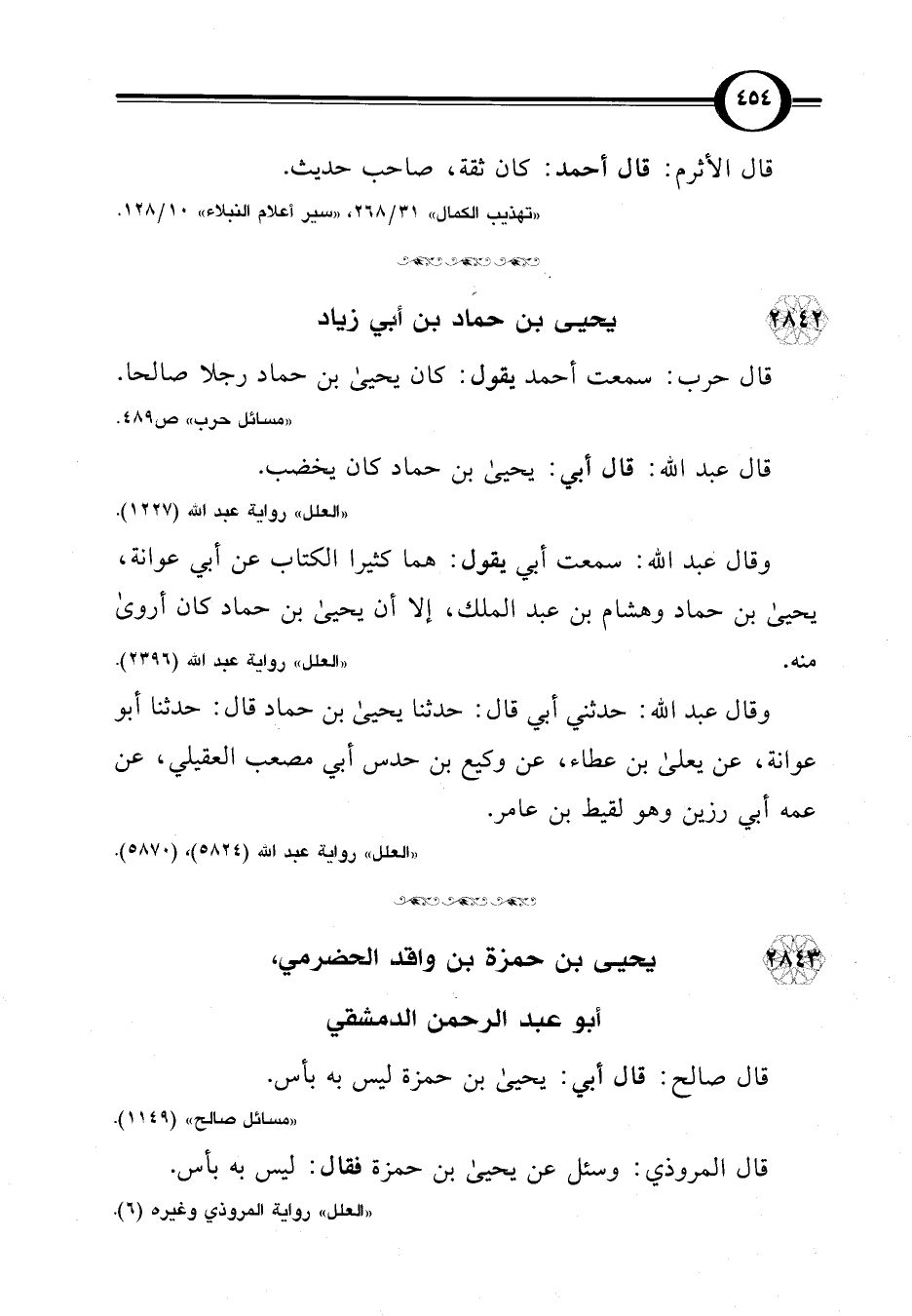قال عبد اللَّه: قال أبي: يحيى بن حماد كان يخضب.