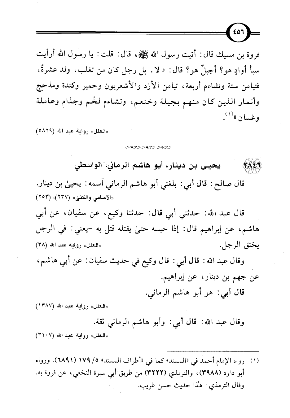 قال صالح: قال أبي: بلغني أبو هاشم الرماني اسمه: يحيى بن دينار.