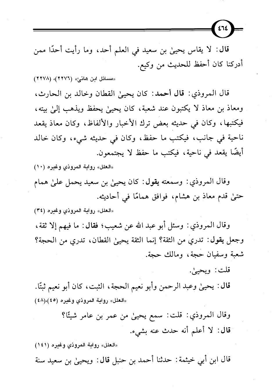 قال ابن أبي خيثمة: حدثنا أحمد بن حنبل قال: ويحيى بن سعيد سنة