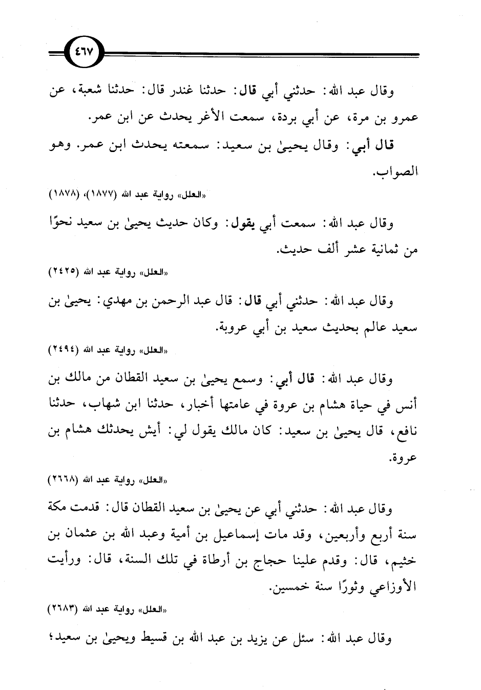 "العلل" رواية عبد اللَّه (1877)، (1878)