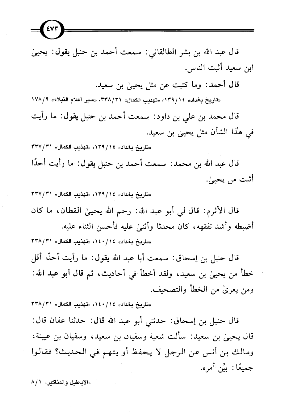 "تاريخ بغداد" 14/ 140، "تهذيب الكمال" 31/ 338
