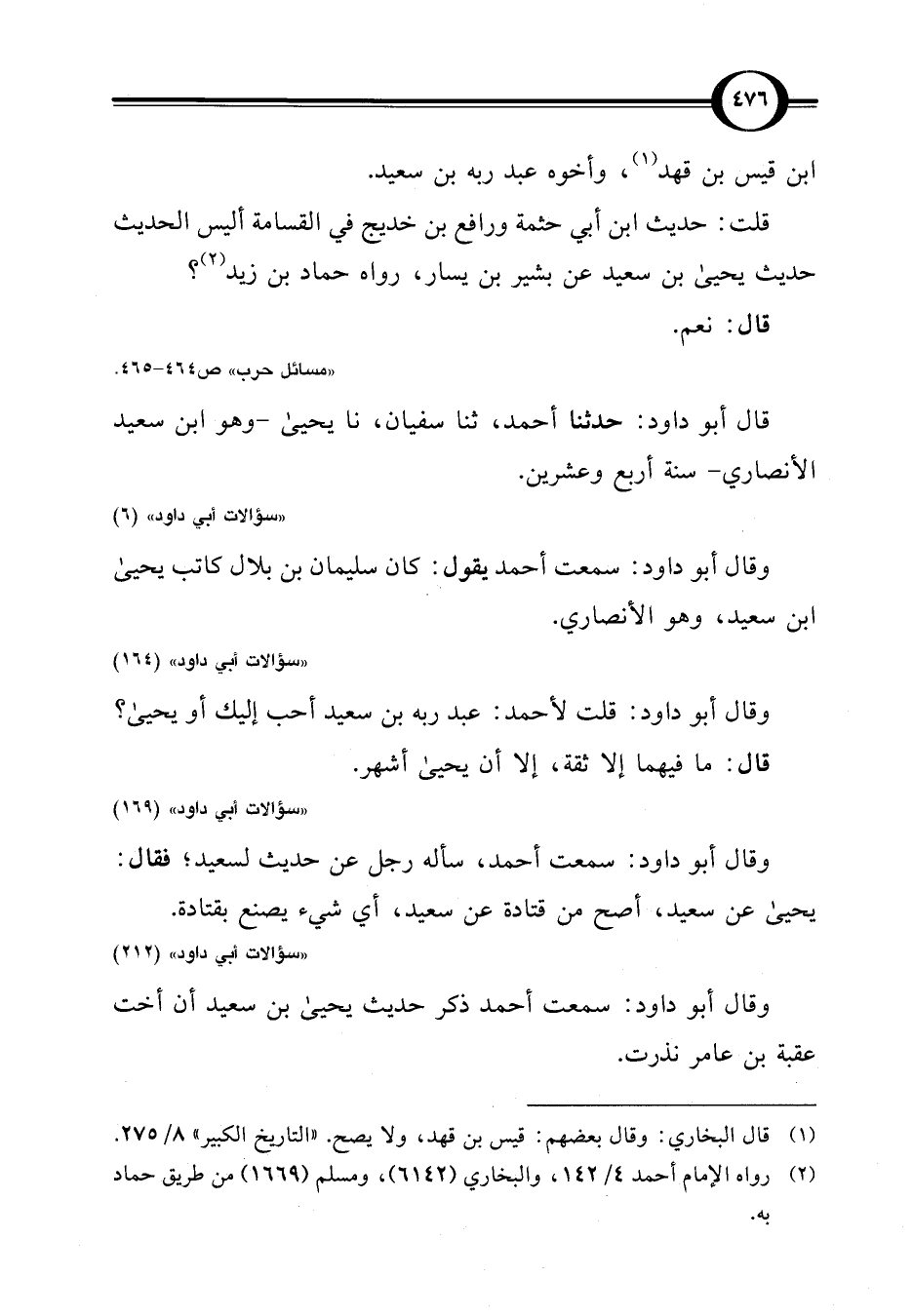 قال أبو داود: حدثنا أحمد، ثنا سفيان، نا يحيى -وهو ابن سعيد الأنصاري- سنة أربع وعشرين.