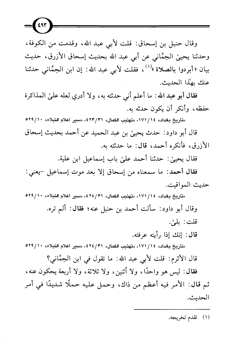 "تاريخ بغداد" 14/ 171، "تهذيب الكمال" 31/ 424, "سير أعلام النبلاء" 10/ 529