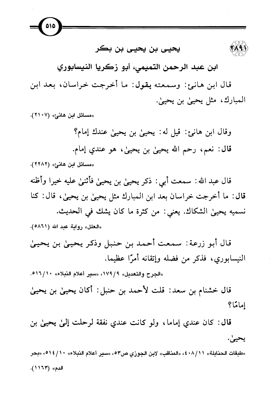 2891 - يحيى بن يحيى بن بكر ابن عبد الرحمن التميمي، أبو زكريا النيسابوري
