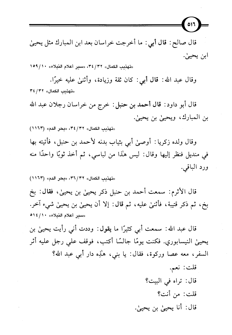 "تهذيب الكمال" 32/ 34، "بحر الدم" (1163)