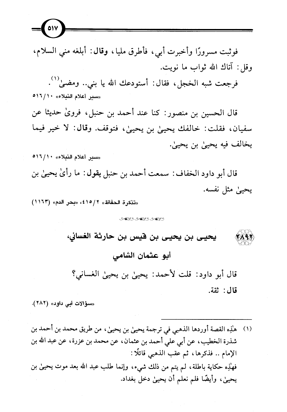 قال أبو داود: قلت لأحمد: يحيى بن يحيى الغساني؟