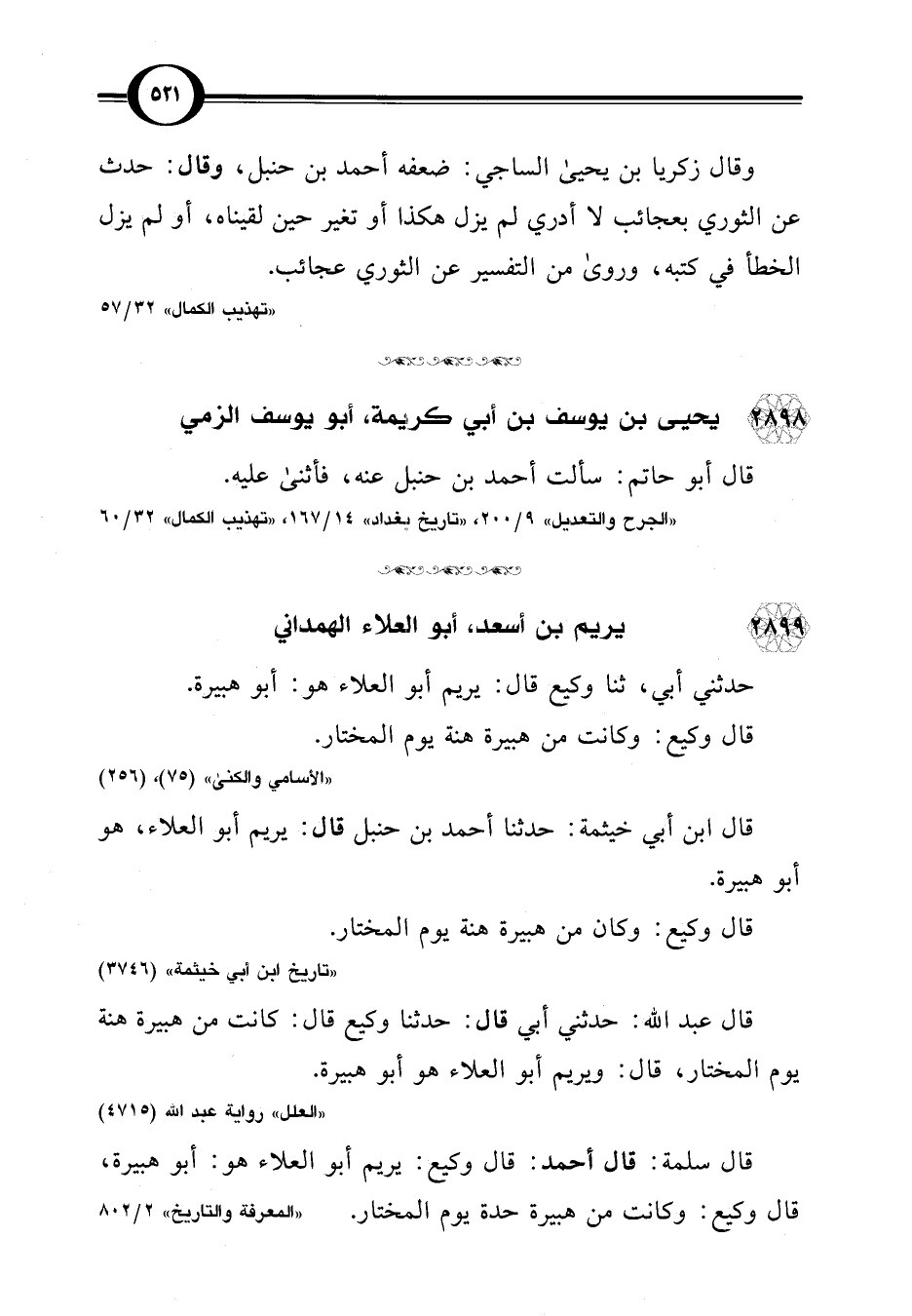 حدثني أبي، ثنا وكيع قال: يريم أبو العلاء هو: أبو هبيرة.