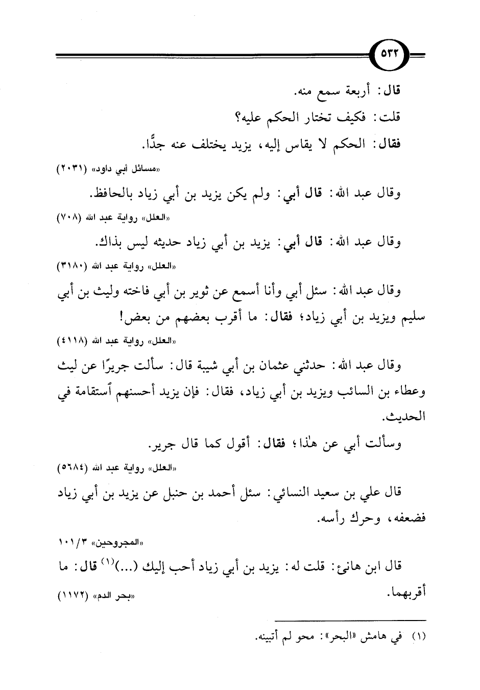 قال ابن هانئ: قلت له: يزيد بن أبي زياد أحب إليك (. . .) (¬1) قال: ما أقربهما.