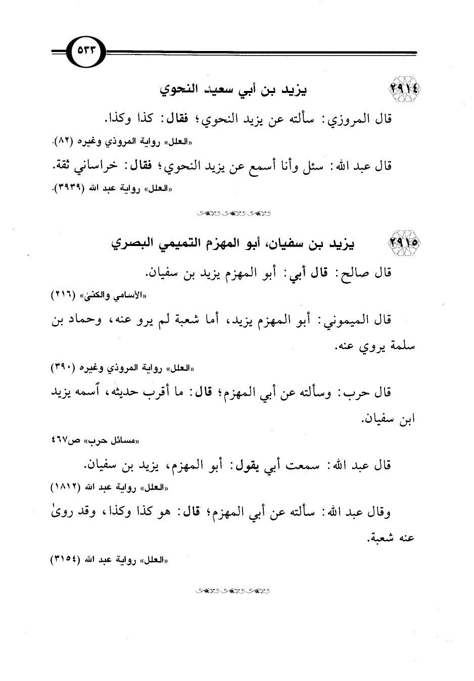 قال عبد اللَّه: سمعت أبي يقول: أبو المهزم، يزيد بن سفيان.