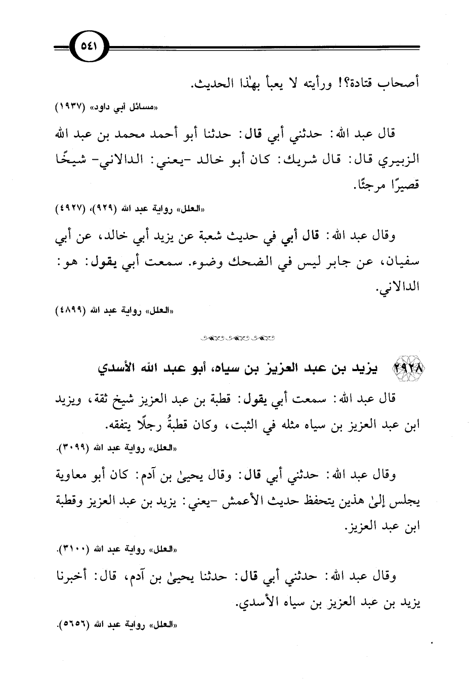 وقال عبد اللَّه: حدثني أبي قال: حدثنا يحيى بن آدم، قال: أخبرنا يزيد بن عبد العزيز بن سياه الأسدي.