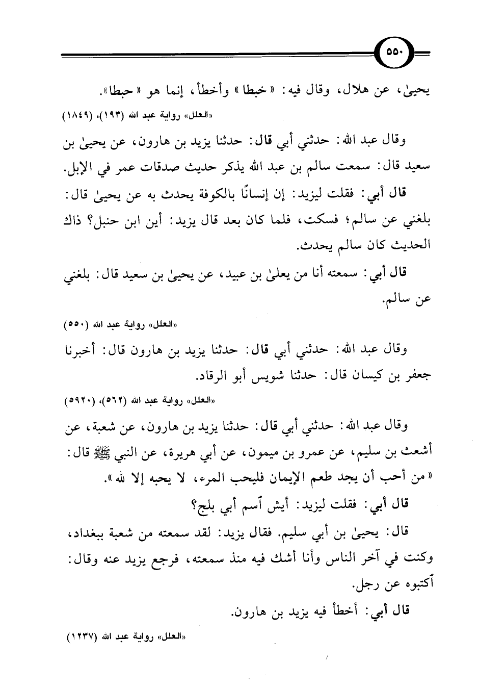 "العلل" رواية عبد اللَّه (562)، (5920)